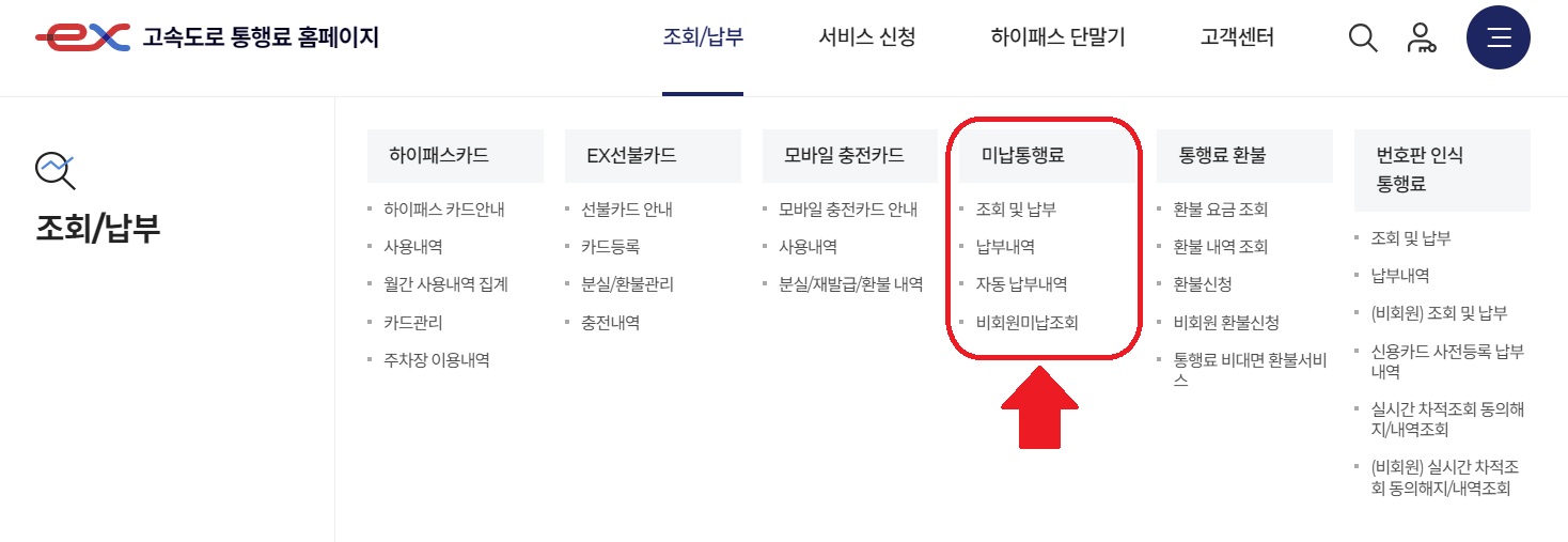 하이패스 미납요금 조회하는 방법