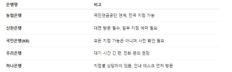 국민연금 안심통장 개설 가능한 은행 (압류방지)